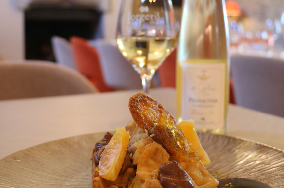 Entrée, plat, dessert avec accord mets/vins (1 verre par plat)